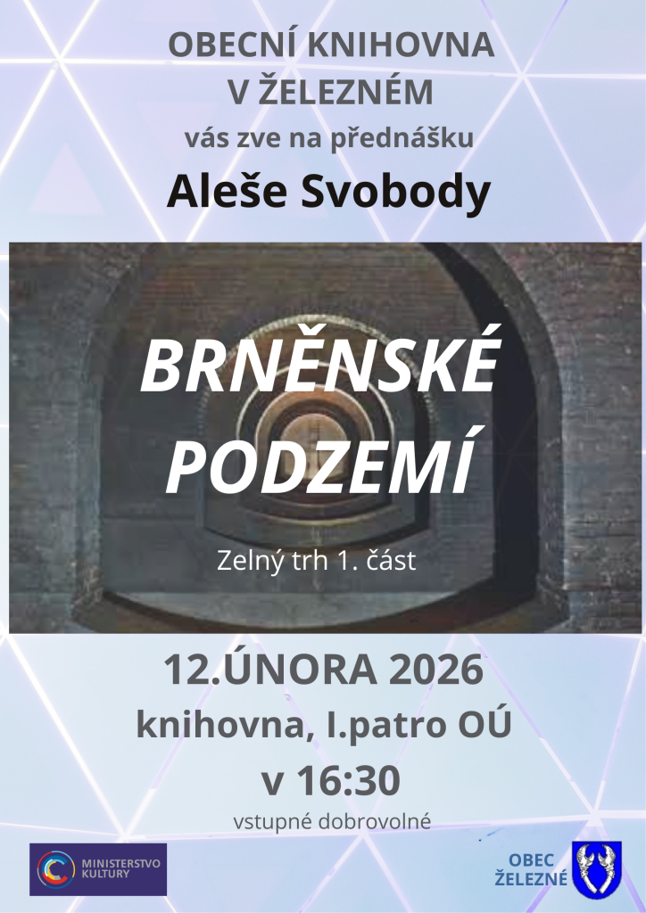 Obecní knihovna v Železném srdečně zve na přednášku Aleše Svobody, která se koná 12. února 2026. Tato akce se uskuteční v knihovně, konkrétně v prvním patře, od 16:30. Přednáška nese název „Zelný trh 1. část“ a je určena pro všechny zájemce o brněnské podzemí a jeho tajemství. Vstupné je dobrovolné, takže přijďte a užijte si zajímavé informace a diskusi.